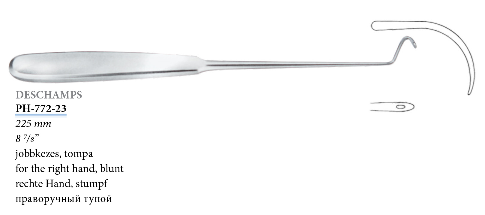 PH-772-23 Deschamps's ligature needle for the right hand, blunt, 225 mm
