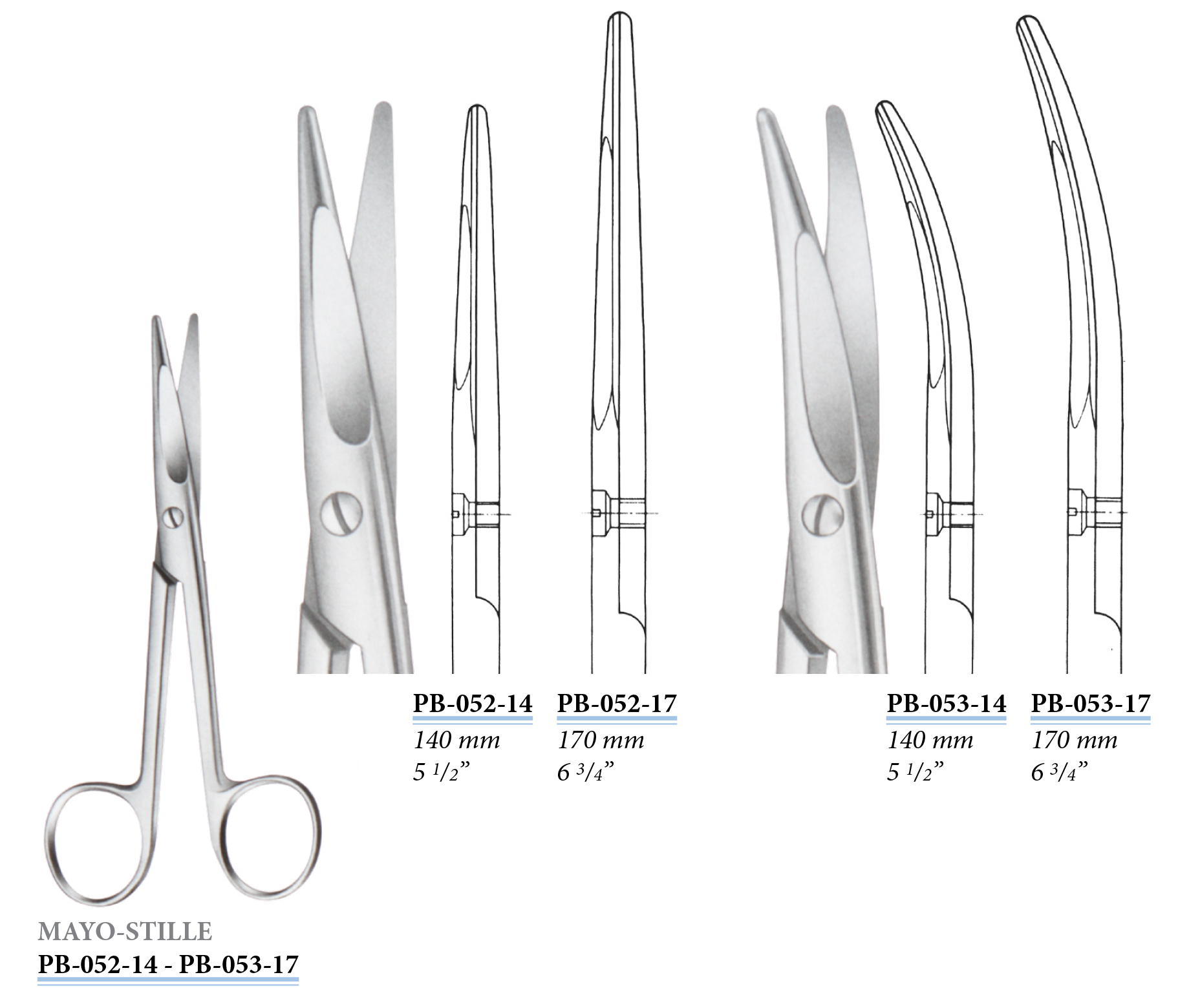 PB-053-14 Mayo-Stille's dissecting scissors, 140 mm curved